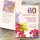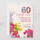 Celebrate a milestone birthday with this beautifully designed 60th birthday thank you card, featuring vibrant floral accents and an elegant "60" graphic. This card offers a heartfelt way to express gratitude to friends and family for their presence and generous gifts on this special occasion. The floral border adds charm, while the customisable text ensures a personal touch. Ideal for those who want a memorable and elegant way to say "thank you" after a 60th birthday celebration. Enjoy!