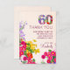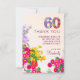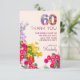Celebrate a milestone birthday with this beautifully designed 60th birthday thank you card, featuring vibrant floral accents and an elegant "60" graphic. This card offers a heartfelt way to express gratitude to friends and family for their presence and generous gifts on this special occasion. The floral border adds charm, while the customisable text ensures a personal touch. Ideal for those who want a memorable and elegant way to say "thank you" after a 60th birthday celebration. Enjoy!