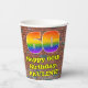 This exciting and fun urban street art and graffiti themed birthday paper cup design features a large number “60” having a colourful rainbow spectrum gradient inspired pattern. It also features the message “Happy 60th Birthday,”, and an editable name. The background features a brick wall pattern. Colourful, vibrant paper cups like this might be fun to have at a birthday party/celebration being held to honour somebody’s 60th birthday. [~Z0000543]