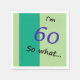 A green paper napkin for someone celebrating 60th birthday. It comes with a funny quote I`m 60 so what, and is perfect for a person with a sense of humour.