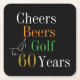 60th Birthday Golf Cheers Beers Black Gold Square Paper Coaster