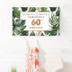 Modern 60th birthday party banner, featuring green watercolor tropical foliage with a copper frame and copper foil "60" balloons with a welcome message and the person's name. Perfect for a tropical, beach or garden birthday party. Matching items and other ages available.
