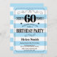 60th Birthday Invitation Blue and White Stripes Typography. Cheers to 60 years. Adult Birthday. Male Men or Women Birthday. Kids Boy or Girl Lady Teen Teenage Bday Invite. 13th 15th 16th 18th 20th 21st 30th 40th 50th 60th 70th 80th 90th 100th. Any Age. For further customisation, please click the "Customise it" button and use our design tool to modify this template.