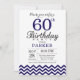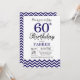 60th Birthday Invitation with Navy Blue Chevron. Black and White. Adult Birthday. Man or Women Bday Invite. For further customisation, please click the "Customise it" button and use our design tool to modify this template.