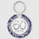 60th Birthday Key Chain-Navy Blue & Silver Ring