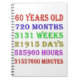 60th birthday counting down the years, days, months, hours, and minutes. A birthday present to give pause for thought! Leap years have been taken into account!