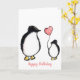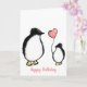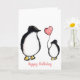 Cute personalized 60th birthday mom card showing a penguin and child with a pink heart balloon.