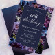 Moody purple flowers create a lush border on this 60th birthday party invitation. Pops of dusty blue and ivory white add to the floral display. A dark background adds to the mood and makes the white text pop. Traditional calligraphy script gives it an elegant vibe. Except for the word birthday, all of the text is editable. You can choose to order on paper or download a digital version. This item is part of the Moody Purple Floral collection. It contains templates you can use to create unique invitations suites, as well as templates for welcome signs, party supplies and decorations.