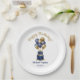 These modern 60th birthday party 9" paper plates featuring a 2-layer navy blue and gold cake with navy blue and gold balloons, the number 60 in gold and the guest of honour's name and the party date would be perfect for celebrating your husband, brother, dad, uncle, grandfather, friend. They are traditional and classic while being fresh, modern and contemporary. They will look fabulous on your counters, buffet and tables.