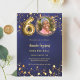 A modern, stylish photo invitation for a 60th birthday party. A navy blue background, decorated with golden stars. The blue colour is uneven. Personalise and add your photo and party details.