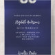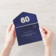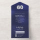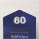 A navy blue background. The blue colour is uneven. Personalise and add name, party details, RSVP date, return address and name. Number 60 is written with a balloon style font in faux silver.