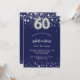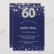 A modern, stylish and glamourous invitation for a 60th birthday party. A navy blue background, decorated with faux silver stars. Personalise and add your name and party details. Number 60 is written with a balloon style font.