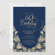 Navy gold elegant 60th birthday party invitation. Classy design featuring roses, faux gold foil and typography script font. Trendy invite card perfect for a stylish female bday celebration. Personalise with your own details. Can be customised to any age. Printed Zazzle invitations or instant download digital printable template.