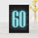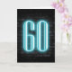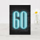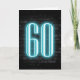 Glowing turquoise neon sign on a dark brick wall for a 60th birthday.