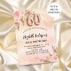 A rose gold, blush pink rustic faux metallic looking background. Decorated with rose gold and pink florals, roses, pampas grass. Personalise and add a name and party details. Number 60 is written with a balloon style font.