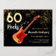 60 Rocks with this cool rock music themed 60th birthday party modern invitation. Rock and roll flame electric guitar with gold glitter and musical note illustrations with personalised gold modern calligraphy typography on a black background. This easy to use template creates the perfect personalised invitation to celebrate sixty in rockstar style. Perfect if you have a live band or are a guitarist, musician and music lover. Unique musical instrument original artwork by artist Catherine Sweetman