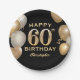 60th Birthday Party Black and Gold Balloons Paper Plate