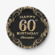 60th Birthday Party Black and Gold Glitter Frame Paper Plate