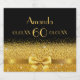 Elegant, classic, glamourous and feminine for a 60th birthday party. A gold coloured ribbon and bow with golden glitter and sparkle, a bit of bling and luxury. Black background. Templates for a name, age 60, date of birth and date of anniversary and age number. Golden letters.