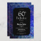 A black 60th birthday party invitation featuring a rich blue painted border.