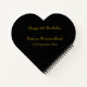 A stylish 60th birthday party guest book, with sparkling wine bucket glasses , age balloons and confetti all on a black background with gold coloured text. This fabulous heart shaped birthday guest book makes a fabulous gift or party memento. Perfect for milestone birthdays such as 40th, 50th 60th or 70th. With 60 sheets (120 pages) - there is plenty of room for party guests to leave well wishes or family to fill with memories and messages of love. Personalise with a name/age/ date of birthday or party on the front and a message name and date on the back.