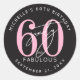 Celebrate in style with this modern round sticker design, perfect for a “Sixty and Fabulous” birthday celebration or any milestone event. The center features a large pink “60” with the word “sixty” in elegant white script layered over it, and “fabulous” just below in bold white sans serif font for a sleek, modern look.