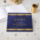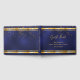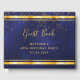 A 60th Birthday Party Guest Book for him, boy, guy in dark blue, navy blue background. The blue colour is uneven. With a faux gold frame and golden confetti sprinkle, golden coloured letters.