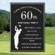 60th Birthday party for a golfer, for him. Black and white, modern, elegant Birthday party invitation. Please personalise it with your details.