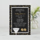 This great 60th birthday party invitation features gold confetti on black in the background with a glass and the number "60" making for a great invitation to a 60th birthday party. Copyright henishouseofpaper