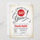 60th Birthday Party Invitation in Red White Black with retro creamy background. Cheers to 60 years! Can be personalised into any year.