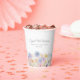 An elegant watercolor floral border of vintage flowers decorates the bottom of this 60th birthday party custom paper cup. The soft pastel flowers are accented with modern line art. The birthday celebrant's name and birthday follow. All text is editable.