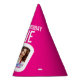 Bright add your own photo and name party hat. Ideal for a special girls 60th birthday party celebration. Vibrant hot pink and white design. Other matching birthday items are available. Original graphic art and design by www.mylittleeden.com