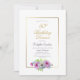 A gold bordered pink and blue floral 60th birthday dinner party invitation.