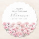 Perfect table decor for a January birthday party. Carnation is the birth flower for that month. It forms a pretty watercolor floral bottom border on this pretty personalized paper coaster. The birthday celebrant's name, age and birthdate are placed above it using elegant calligraphy and typography. All text is editable.