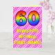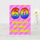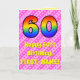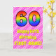 60th Birthday: Pink Stripes & Hearts, Rainbow # 60 Card