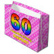 60th Birthday: Pink Stripes & Hearts, Rainbow # 60 Large Gift Bag