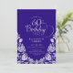 Purple silver elegant 60th birthday party invitation. Classy design featuring roses, faux silver foil and typography script font. Trendy invite card perfect for a stylish female bday celebration. Personalise with your own details. Can be customised to any age. Printed Zazzle invitations or instant download digital printable template.