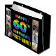 This cheerful and bold birthday gift bag design features the message “HAPPY 60TH BIRTHDAY,“ with the text having a multicolored rainbow spectrum inspired gradient pattern, along with a custom recipient name. To the left and the right of the rainbow-patterned message on the front are some photos that can be personalised, perhaps with photos of the recipient, the recipient’s family and friends, and/or the sender(s) of the gift. A joyful birthday themed gift bag like this might be used when giving a gift in celebration of somebody’s sixtieth birthday. (Photography © Storytree Studios, Stanford, CA.) [~Z0000668]