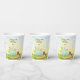 This spring-themed 60th birthday party cup features a daffodil-inspired cake, the flower of March, with a robin perched on a wooden cake stand, creating a cheerful and meaningful design to celebrate a new beginning.
