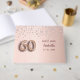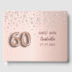 A guestbook for a girly and glamourous 60th birthday party. A faux rose gold background with pink faux diamonds. Personalise and add a name and date. The name is written in dark rose gold with a modern hand lettered style script. Number 60 is written with a balloon style font.
