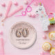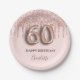 Elegant, classic, glamourous and girly for a 60th birthday party. Blush pink background. Decorated with rose gold faux glitter drips, paint dripping look. Personalise and add a name. With the text: Happy Birthday. The name is written with a modern dark rose coloured hand lettered style script. Number 60 is written with a balloon style font.