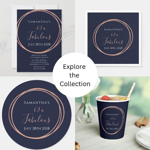 60 and Fabulous Birthday Party Navy Rose GoldDesigned by Only The Moon