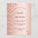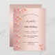 A modern and elegant birthday party invitation for a 60th birthday party. A chic rose gold faux metallic, foil looking background decorated with pink and rose gold coloured botanical sprigs, florals and foliage. The name is written with a trendy handlettered style script with swashes. Black text. To keep the swashes only delete the sample name, leave the spaces or emoji's in front and after the name.
