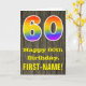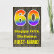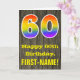 The front of this colorful yet rustic birthday greeting card design features a large number "60" with a rainbow spectrum gradient inspired pattern, along with the message "Happy 60th Birthday,", and a custom recipient name. The background of the front of the card features a rustic faux wood grain appearance pattern. The inside features a customizable birthday greeting message, or could perhaps be cleared and left blank if a message is to be written by hand instead. A customizable birthday card like this might be a fun way to send birthday wishes to somebody who is celebrating their sixtieth birthday. [~Z0000419]