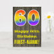 60th Birthday: Rustic Faux Wood Look, Rainbow "60" Card