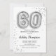 60th birthday party invitation. Elegant design in faux glitter silver. Invite card features silver number 60 balloons and script font. Perfect for a stylish bday celebration. Message me if you need custom age.