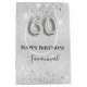 Elegant, classic, glamourous 60th birthday party. A silver metallic background. Decorated with glitter dust. Personalise and add a name. With the text: Happy Birthday. The name is written with a modern hand lettered style script. Number 60 is written with a balloon style font.