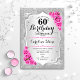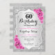 60th Birthday - Silver Stripes Pink Roses Invitation