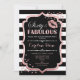 Elegant black white design with faux glitter rose gold. Features pink lips kiss, black white stripes, confetti and script font. Perfect for an elegant birthday party. Sixty Fabulous! Message me if you need further customization.
