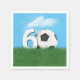 A black and white soccer ball in green grass, blue sky, and white fluffy clouds for a 60th birthday party.